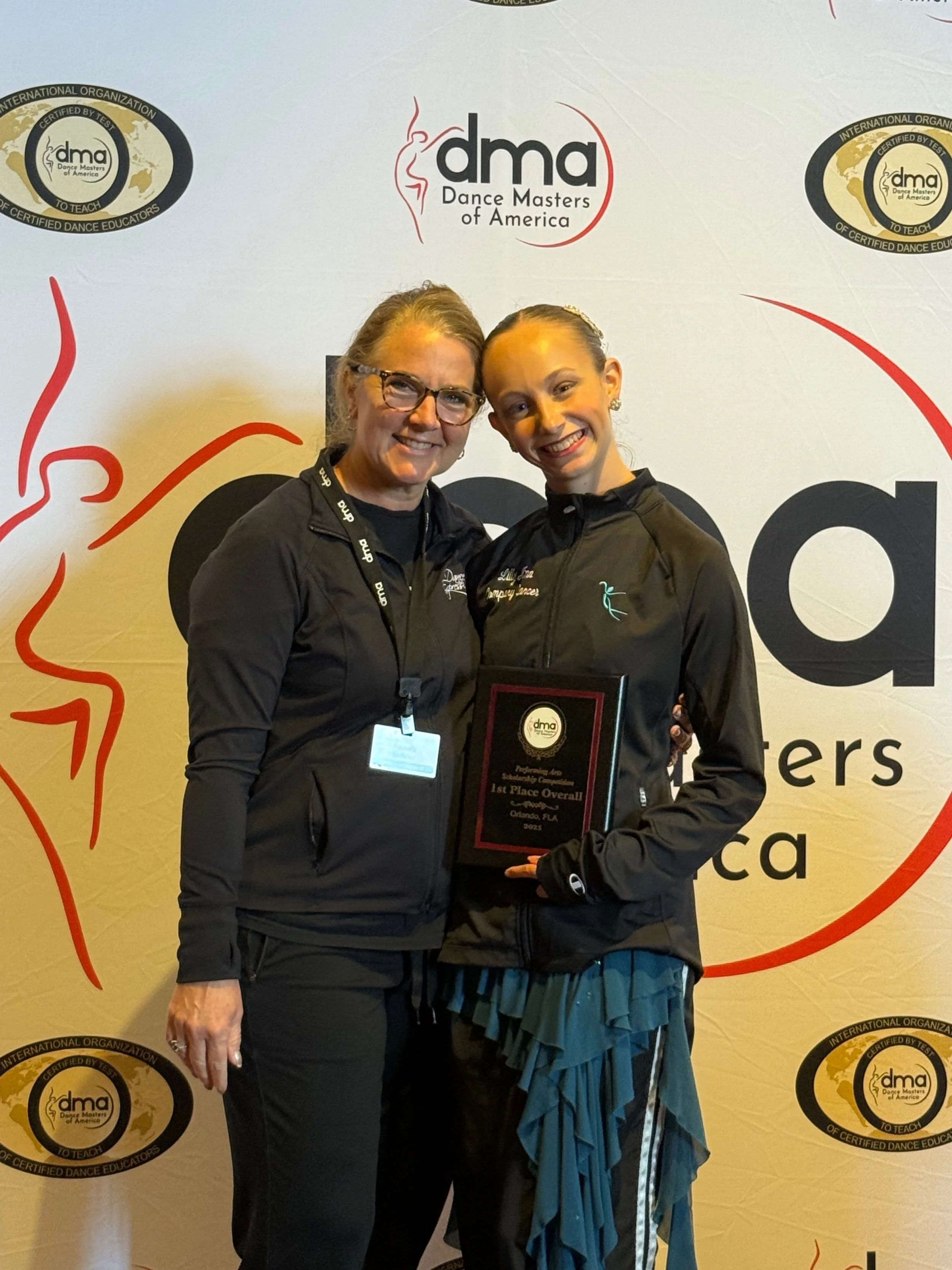 Lilly Ann Bailey performed her contemporary solo “Beautiful Life” choreographed by Ms. Pam Schrier and received a Platinum Award, a Stand Out Award, and placed 6th Overall in the 13 and up solo category. She too was invited to compete in the Grand National Championship, in which she won 1st Place Overall! She was honored to be invited to perform once more at the DMA National Closing Banquet, where she was one of 3 dancers who received a scholarship and the invitation to represent the United States with World Performers next year at the Dance World Cup in Dublin, Ireland. Lilly Ann reminisced, “Attending the Dance Masters of America National Workshop and Competition was such an unforgettable experience. I was able to connect with other dancers who shared the same passion as me, and performing was such a fun and exciting part of it all. The classes really pushed me out of my comfort zone in the best way, and I learned so much.”